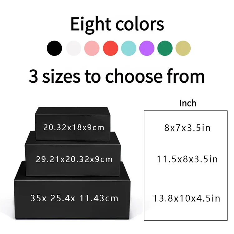 | Technische specificaties: | Klein: 20,32 × 18 × 9 cm (8 × 7 × 3,5 inch) Medium: 29,21 × 20,32 × 9 cm (11,5 × 8 × 3,5 inch) Groot: 35 × 25,4 × 11,43 cm (13,8 × 10 × 4,5 inch) (aangepaste formaten beschikbaar) |